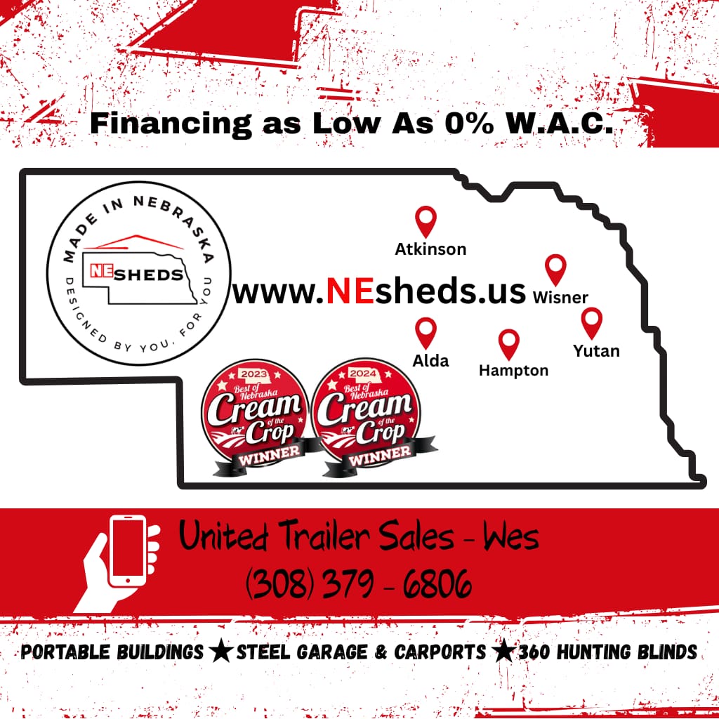 Built with Nebraska craftsmanship and sold by NE Sheds, We have display lot locations in Yutan, Wisner, Alda, Atkinson, and Hampton.