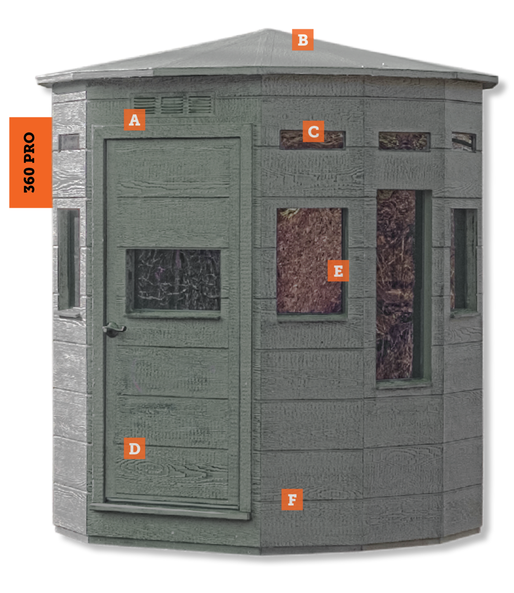 Get the upper hand with the 360 Pro—a powerful, mid-weight blind (650 lbs) that delivers exceptional visibility and versatility. With 9 gun windows and 4 archery windows, this model provides wide, strategic coverage for every hunting style.